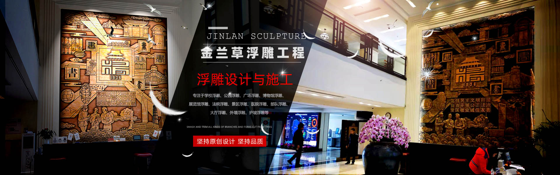 金蘭草浮雕專注于浮雕原創(chuàng)設計與定制服務,精雕細琢,力求精妙絕倫,服務中高端客戶。學校浮雕、公園浮雕、廣場浮雕、法院浮雕、景區(qū)浮雕、軍事浮雕、醫(yī)院浮雕、博物館浮雕、展覽館浮雕、大廳浮雕、外墻浮雕、護坡浮雕。