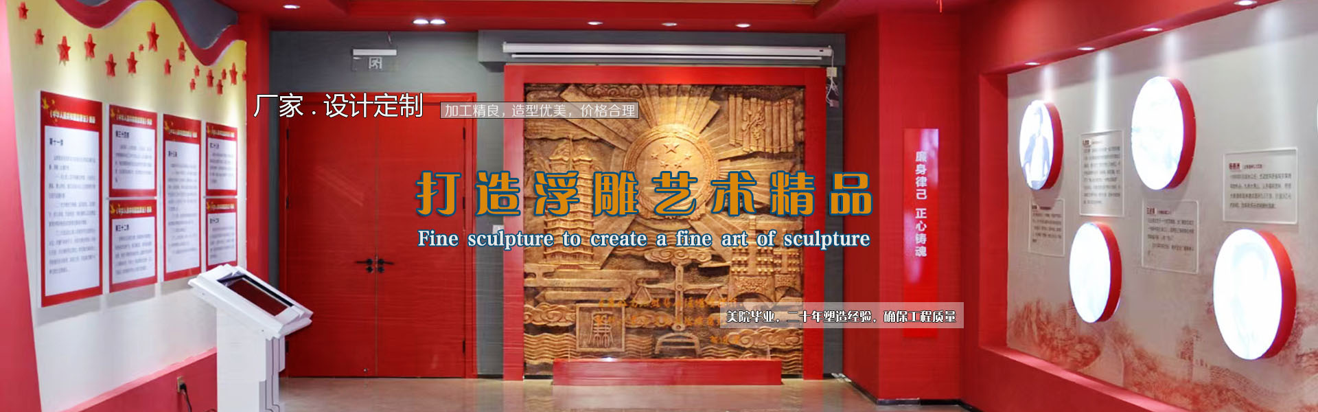 查看更多產(chǎn)品 + 電話:15978409299金蘭草浮雕是一家專業(yè)的玻璃鋼浮雕、鍛銅浮雕、鑄銅浮雕、不銹鋼浮雕、砂巖浮雕、石材浮雕、鐵藝浮雕、水泥浮雕等設計與施工的雕塑藝術企業(yè),專注于學校浮雕、公園浮雕、廣場浮雕、博物館浮雕、展覽館浮雕、法院浮雕、景區(qū)浮雕、醫(yī)院浮雕、部隊浮雕、大廳浮雕、外墻浮雕、護坡浮雕等,服務社會,為廣大業(yè)主朋友們設計制作出精品浮雕。企業(yè)自成立以來,一直致力于高水準浮雕的設計與施工,真心的服務,力求讓每一位客戶滿意。多年來,公司服務全國,業(yè)績遍布各地,得到眾多客戶的肯定。 公司秉承對客戶負責的原則,堅持原創(chuàng)設計,堅持品質(zhì),堅持每一件浮雕作品不僅僅要打動客戶,更要打動自己。讓客戶放心,對自己負責,是公司始終堅持的方針。 展望未來,金蘭浮雕將以更加開放的胸懷迎接發(fā)展中的挑戰(zhàn)和機遇,“開拓創(chuàng)新,合作共贏,追求卓越”,與社會各界朋友一起攜手共創(chuàng)輝煌! 公司自成立以來,一直致力于高水準浮雕、雕塑、景觀設計與施工,真心的服務,力求讓每一位客戶滿意。多年來,公司服務全國,業(yè)績遍布各地,得到眾多客戶的肯定。 公司秉承對客戶負責的原則,堅持原創(chuàng)設計,堅持品質(zhì),堅持每一件雕塑作品不僅僅要打動客戶,更要打動自己。讓客戶放心,對自己負責,是公司始終堅持的方針。 展望未來,金蘭園林景觀將以更加開放的 ...